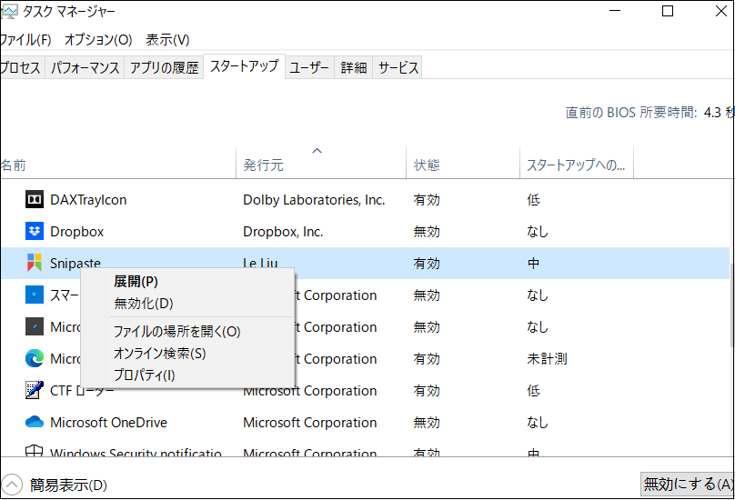 方法1.タスクマネージャーを使用してスタートアッププログラムを無効にする