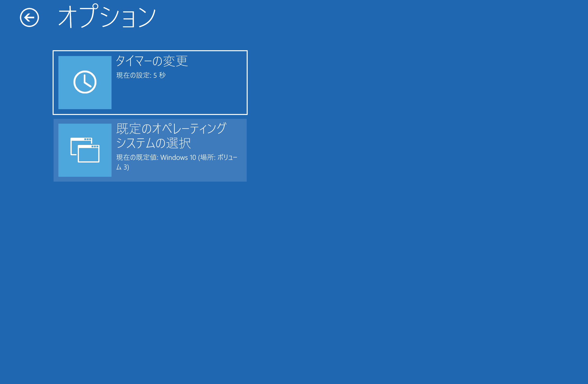 ブートメニューのデフォルトの30秒を5秒、10秒、15秒に変更したい場合は、[タイマーのタイルを変更する]をクリックします。