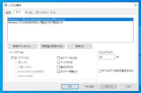 デフォルト設定では、最後にインストールした、または最後にアップグレードしたオペレーティングシステムが、ブートメニューのデフォルトオペレーティングシステムになります。
