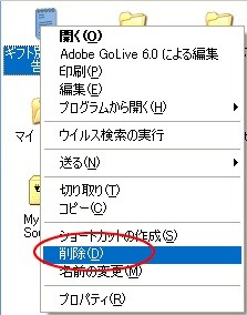 マウスを削除したいファイルやフォルダーに移動して、マウスを右クリックして[削除]をクリックします。