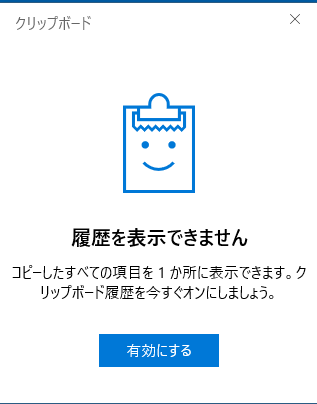 キーボードに[Windows]+[V]を同時に押すと、次のクリップボードウィンドウが表示されます。