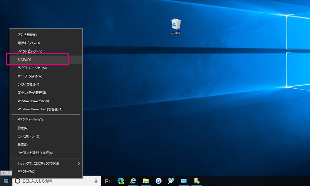 手順① Windowsアイコンを右クリックし、「システム」をクリックします。
