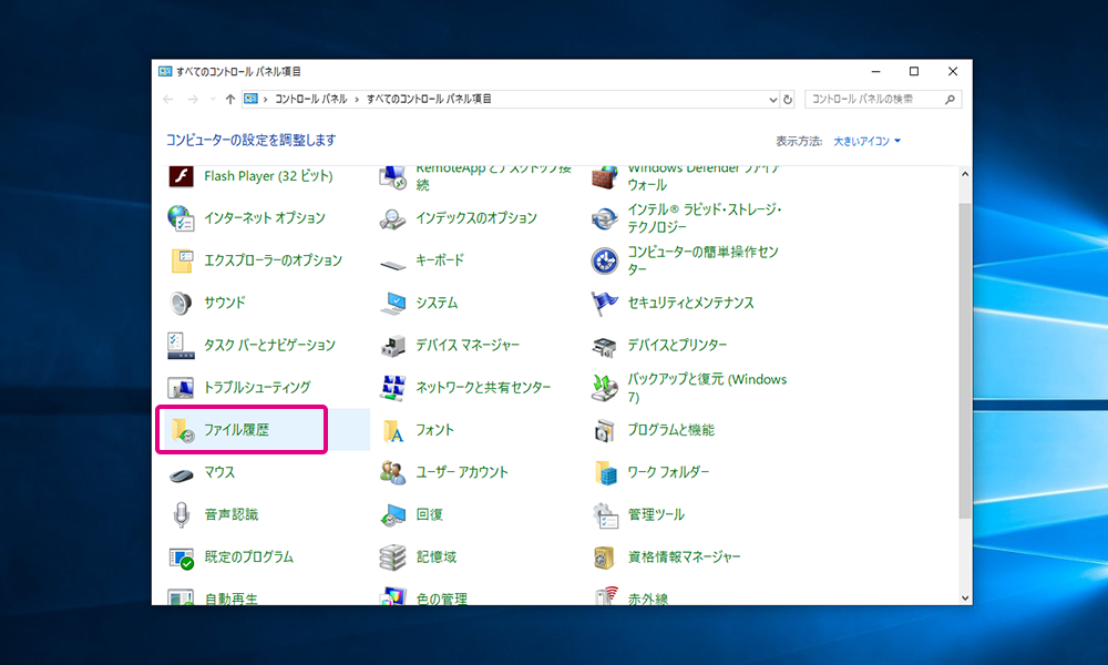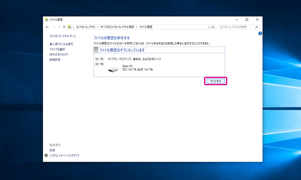 ファイル履歴機能の変更方法とその後の復元方法は以下の通りです。