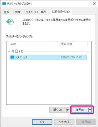 2.以前のバージョンを使ってデータを復元する