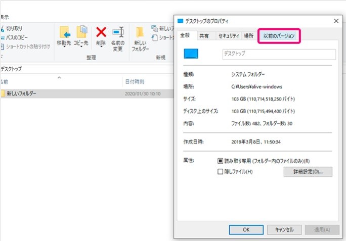 「以前のバージョン」を使えば、データが削除された日やファイル名が分からない場合でも、データを復元できる可能性があります。