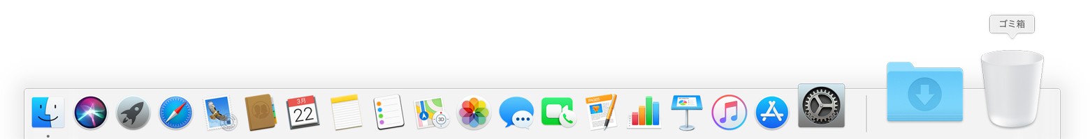 2.App をゴミ箱にドラッグするか、App を選択して「ファイル」>「ゴミ箱に入れる」の順に選択します(Dock の右端にゴミ箱アイコンが表示されているところ)。