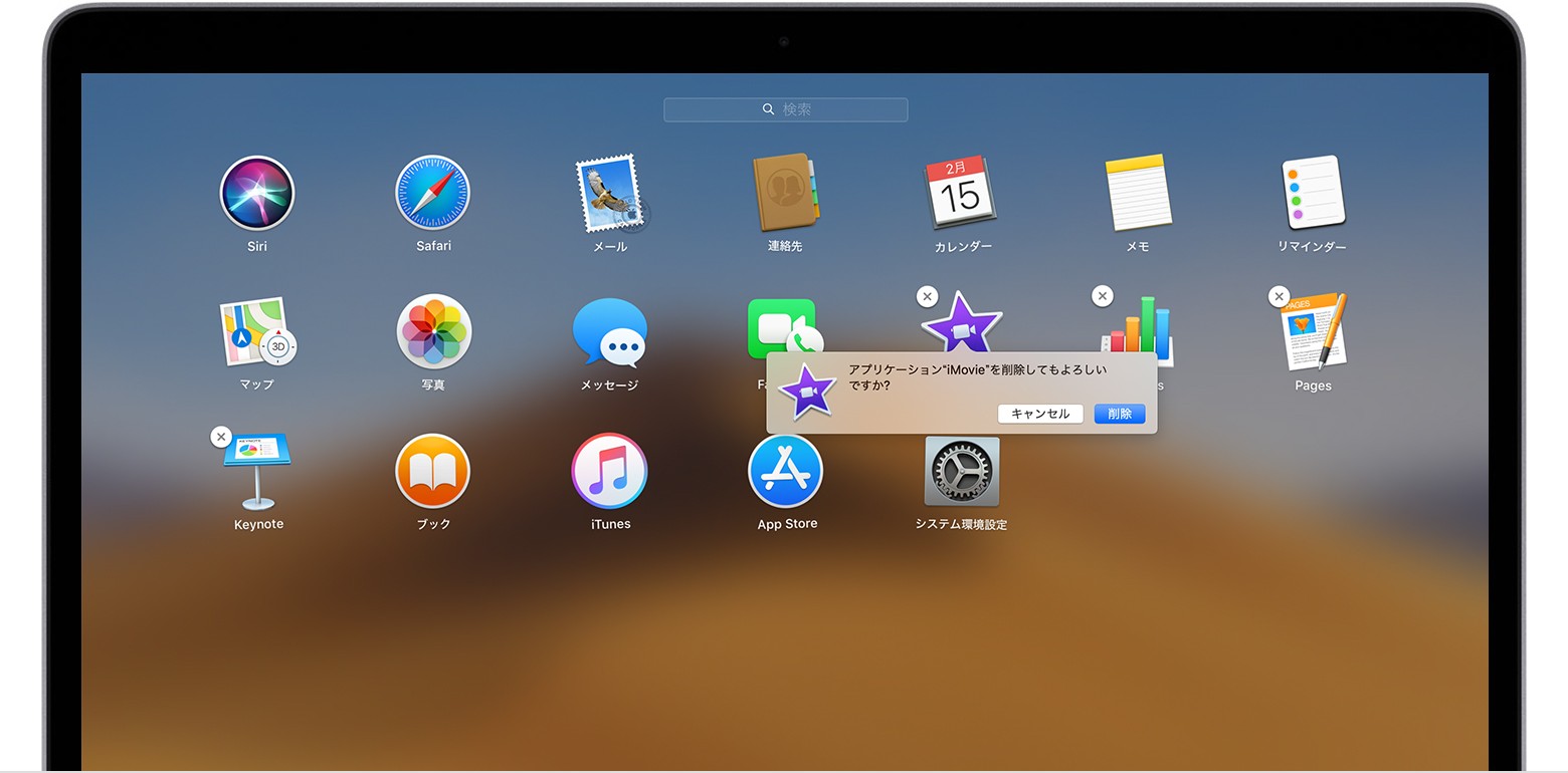 「X」ボタン が表示されない App は、App Store から入手したものではないか、Mac に必須の App です。App Store 以外から入手した App を削除するには、代わりに Finder を使ってください。