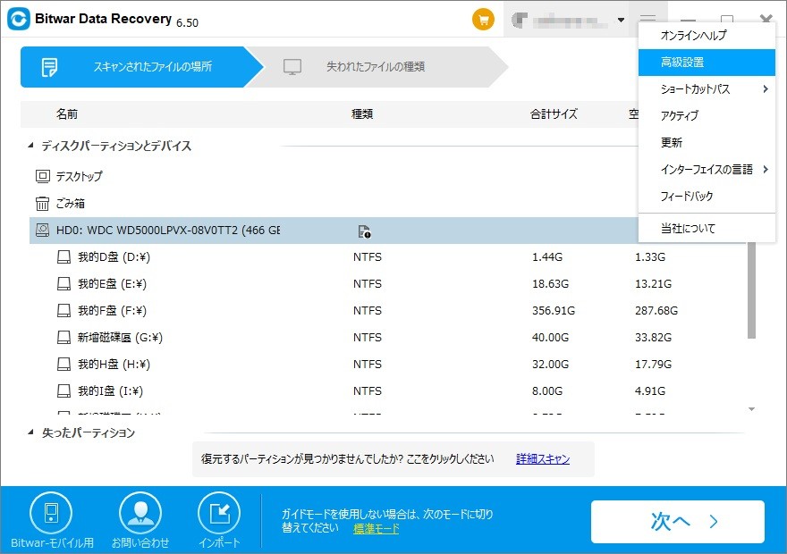 この記事では、Bitwar Data Recoveryが提供する詳細設定を構成する方法について説明します。