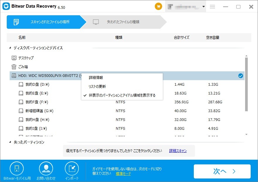 Bitwar Data Recoveryは、データレスキューの目的で2つのリカバリモードを提供します。データが失われる理由を知っているユーザーにとっては、「標準モード」の方が便利です。また、データが失われた理由がわからない場合は、「ウィザードモード」を選択して復元することをお勧めします。