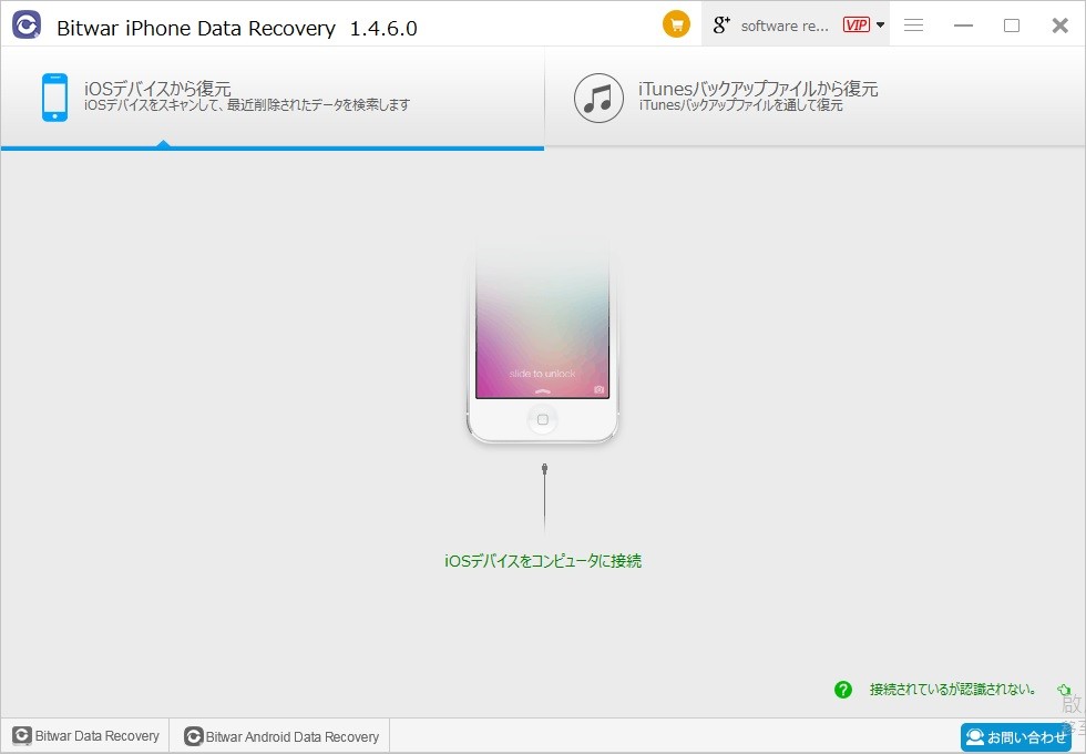 ステップ1:インストール済みのBitwar iPhone Data Recoveryを起動し、購入時に携帯電話に付属していた元のケーブルを使用してiPhoneをコンピューターに接続します。 iPhone / iPadからの復元を選択します。