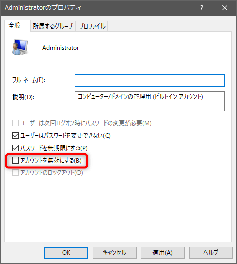 Administratorというユーザーのアイコンに下向き矢印が表示されている場合、このオプションが無効になっていることを意味します。