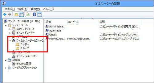 ステップ2:ここから、「ローカルユーザーとグループ」を選択し、「ユーザー」フォルダを開いてください。