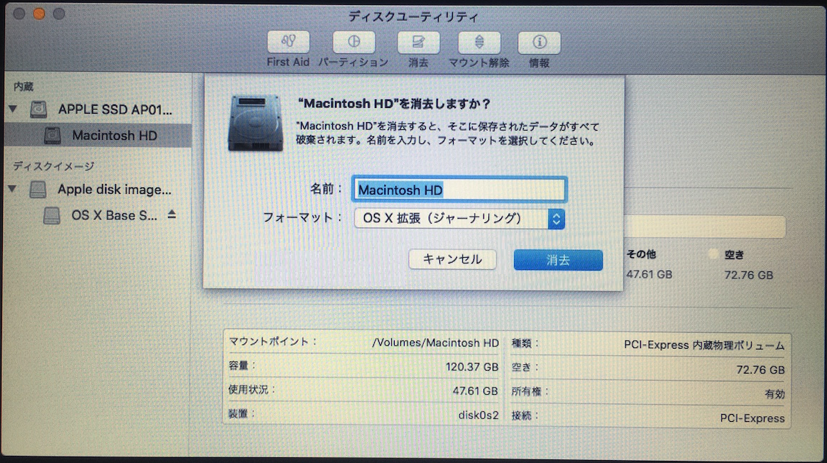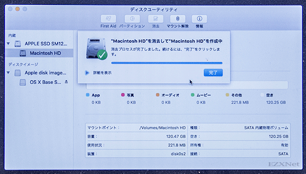 注:この時点から、macOSは内部ハードドライブに保存されているすべてのデータを消去します。