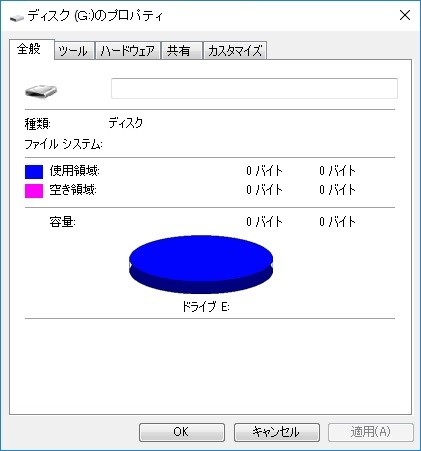 ファイルシステムを確認するには、ローカルディスクの「プロパティ」を開き、「使用領域」と「空き領域」に0バイトと表示されます。