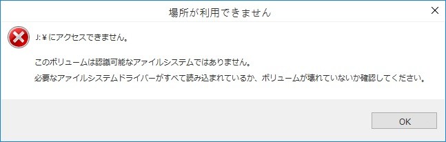 パーティションを開こうとしたときに突然「場所が利用できません。アクセスできません。」のようなエラーメッセージが表示される場合があります。そのパーティションはRAWパーティションになっています。