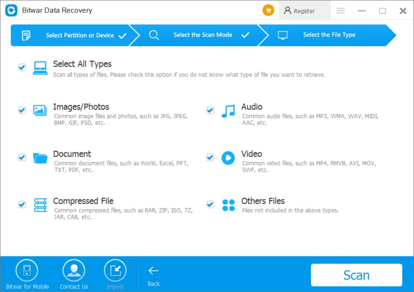 場合によっては、ユーザーはどの種類のファイルが失われたかを正確に知らないことがあります。したがって、最も重要な問題は、必要なものをすべて復元するのに役立つ簡単なデータ復旧ソフトウェアを見つけることです。さいわい、Bitwar Data Recoveryは、WindowsまたはMac上のすべてのファイルタイプのリカバリをサポートしています。
