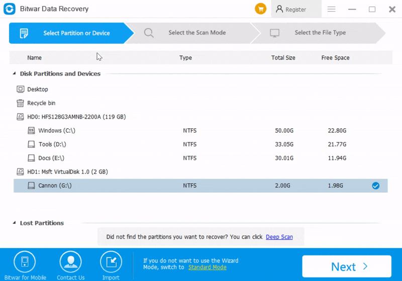 Bitwar Data Recoveryは、SDカード、メモリースティック、PC / Mac、ハードドライブ、カメラのストレージメディア、USBドライブ、ごみ箱から誤って削除、フォーマット、その他の失われたデータを復元できます。