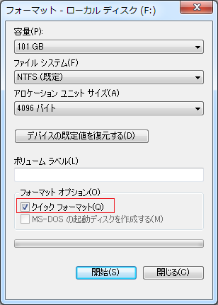 フルフォーマットとクイックフォーマットの違いについて