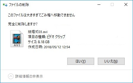 しかし、ごみ箱に保存されているファイルを右クリックして「削除」をクリックするとファイルは完全削除されます。サイズが大きいファイルを削除する場合、Windowsは「このファイルは大きすぎてごみ箱へ移動できません。完全に削除しますか?」というメッセージが表示されることもあります。「はい」をクリックすると、ファイルは完全に削除されます。