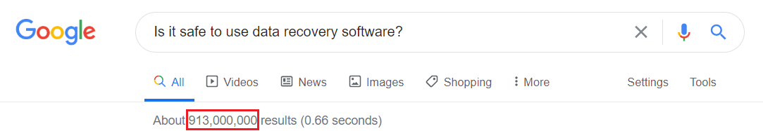 「データ復元ソフトウェアは安全ですか?」という質問に答える前に、Google検索を見てみましょう。Googleでの9000万件以上の結果は、多くの人はデータ復元ソフトの安全性や危険性について非常に懸念していることを示しています。この記事では、データ復元ソフトの安全性を説明し、信頼できる安全なデータ復元ソフトを紹介します。