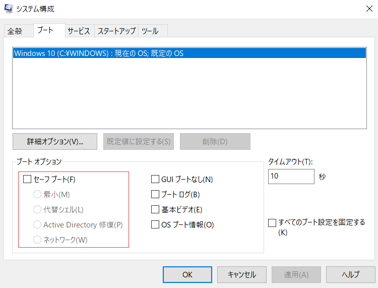 Windows10をセーフモードで起動する方法