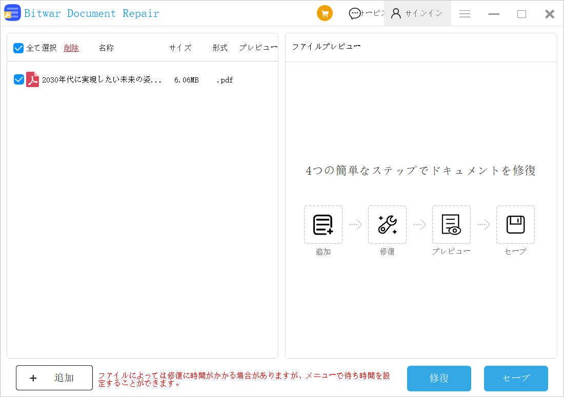 まず、Bitwarドキュメント修復ソフトをインストールしてください。Bitwarドキュメント修復ソフトダウンロード