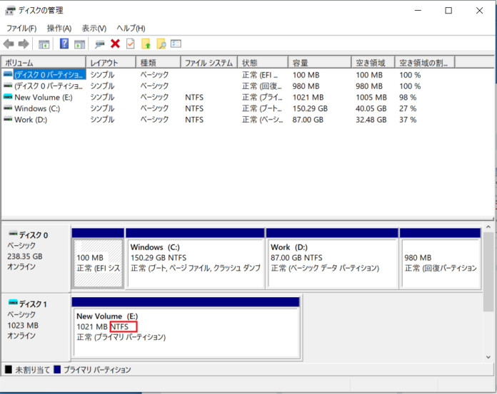 方法1.スタートボタンを右クリックして「ディスクの管理」をクリックします。赤い部分がRAWと表示されているかどうかを確認します。