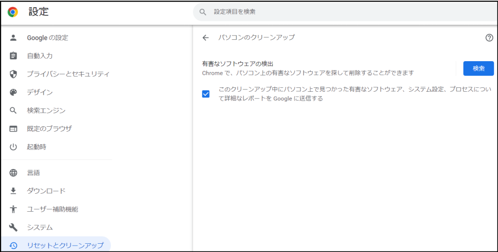 対処法4.Chromeブラウザのクリーンアップを実行する