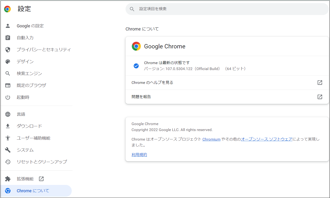 ステップ2.「Chromeについて」をクリックして、最新バージョンがないかを確認します。