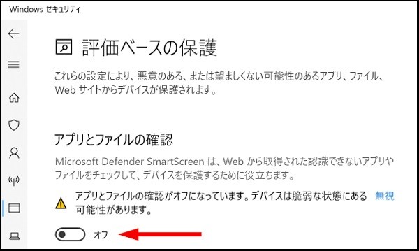 解決策3.Windows Defender SmartScreenを一時無効にする