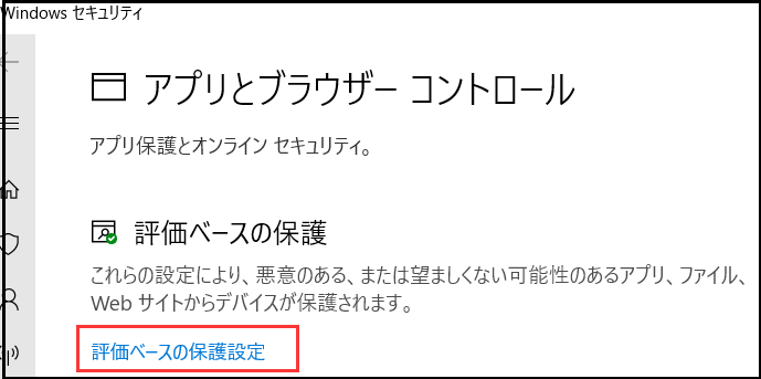 SmartScreen関連の設定が有効になっていることが原因で、「このアプリは保護のためにブロックされました」のエラーが発生することがあります。アプリケーションの使用を中止する場合は、SmartScreen機能を再度有効にしてください。
