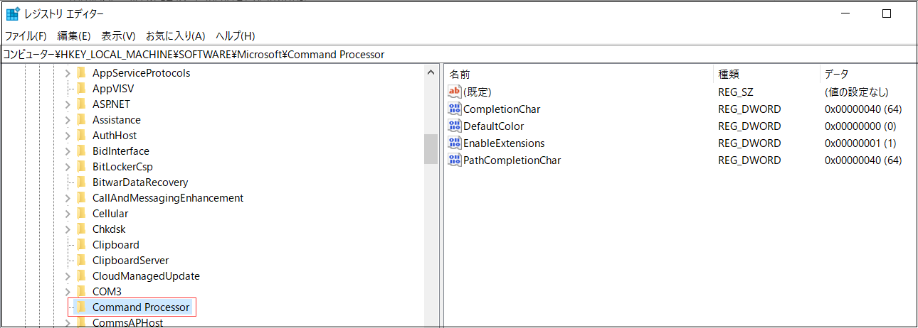 ステップ3.レジストリエディターで「HKEY_LOCAL_MACHINE\Software\Microsoft\Command Processor」の順で項目を展開します。右側にauto runキーが表示される場合、それを削除します。
