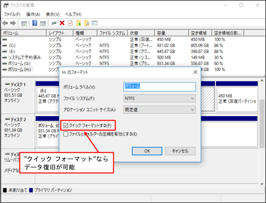対処法1.「ディスクの管理」でSDカードをフォーマットする