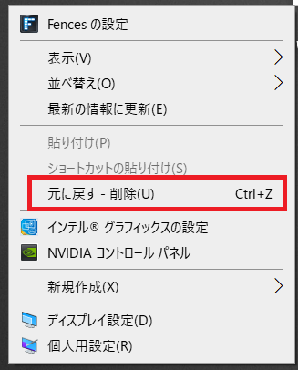 削除を実行したばかりの場合は、デスクトップでマウスを右クリックして「元に戻す‐削除」をクリックして完全削除されたファイルを取得することもできます。