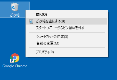 「ごみ箱」に入っているすべてのファイルを削除するには、デスクトップでゴミ箱のアイコンを右クリックし、「ごみ箱を空にする」をクリックします。