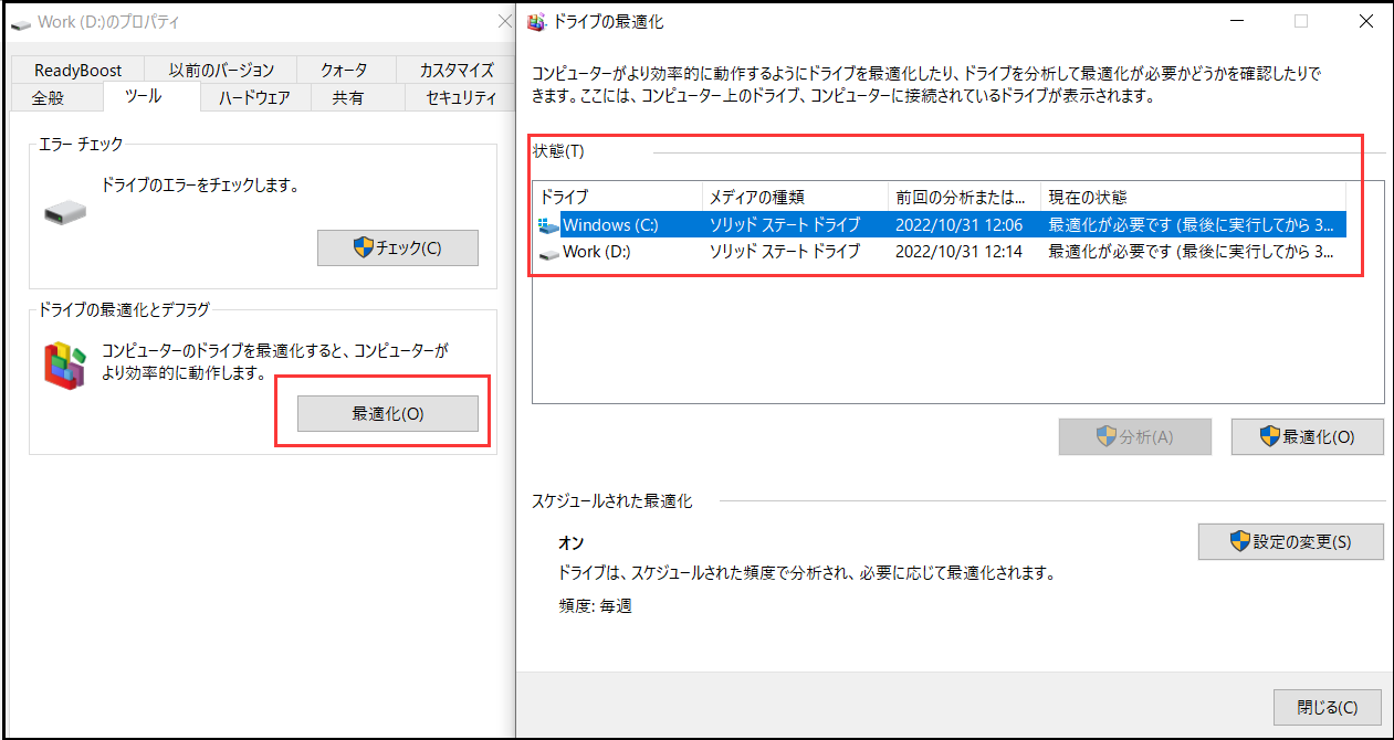 SSDのデフラグと最適化を行う手順