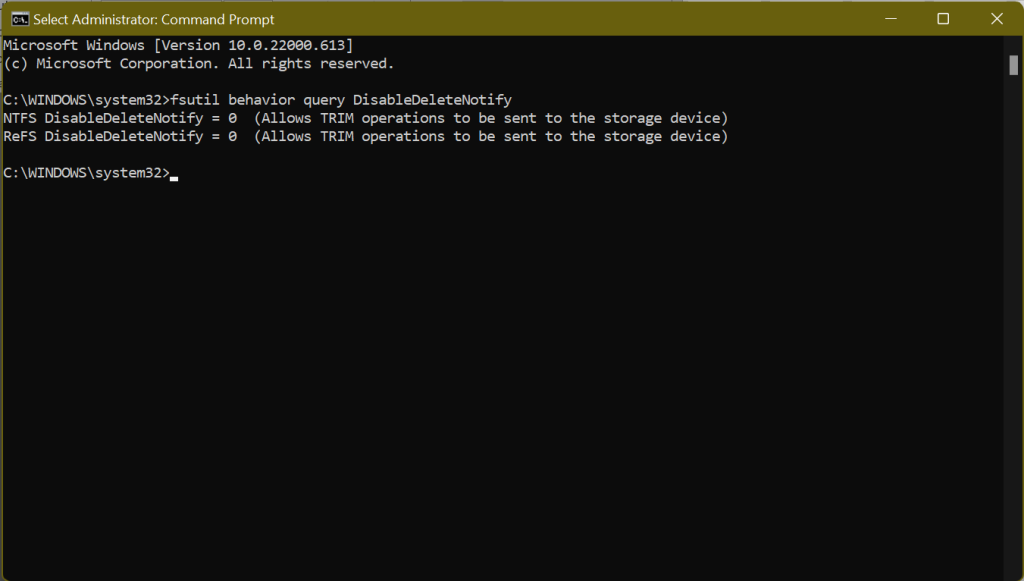 TRIMは、SSDが使われなくなった領域からデータを消去することを保証します。 これにより、書き込み速度が低下し、SSDの寿命まで最適な性能を維持することができます。 Windows 10/11では、TRIMはデフォルトで有効になっているはずですが、そうでない場合もあります。 正常に動作しているかどうかを確認する必要があります。 そのためには、以下の手順を行ってください。