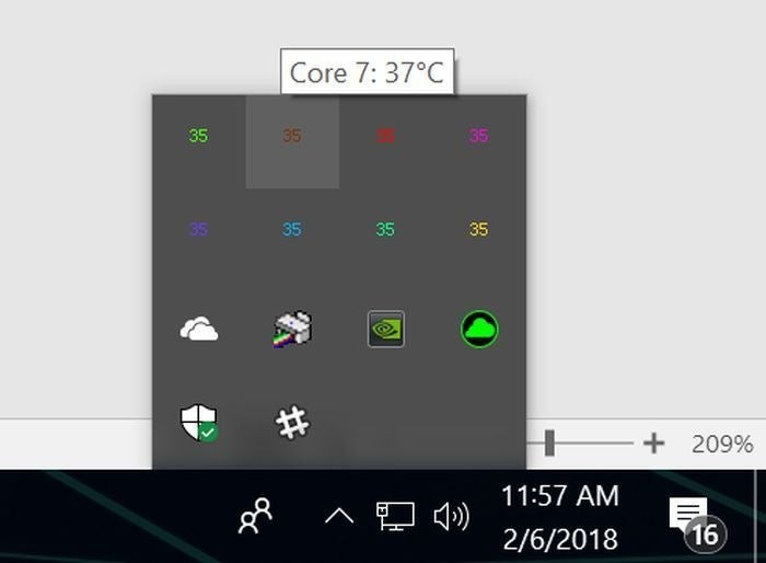 これを実行すると、システムトレイにCPUの温度を示すアイコンまたは一連のアイコンとして表示されます。 CPUに複数のコアがある場合(最近のCPUはほとんどそうです)、それぞれのコアに対応した複数のアイコンが表示されます。