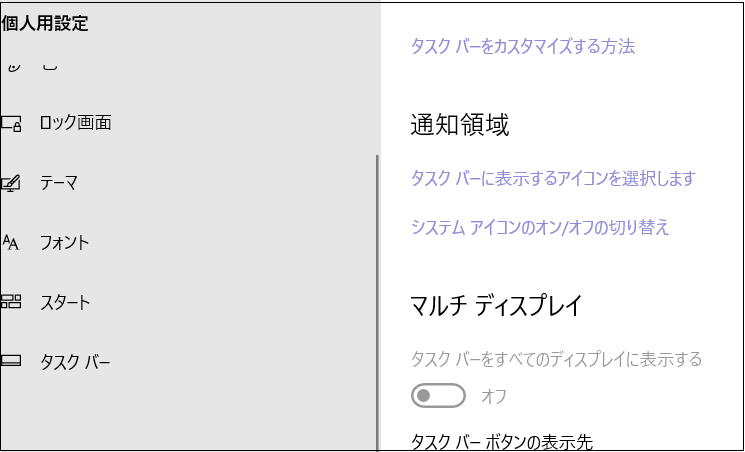 ステップ1:「Windows 10の設定」>「個人設定」>「タスクバー」ページにアクセスします。
