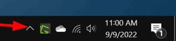 ステップ1:システムトレイの小さな上向き矢印アイコン(下図参照)をクリックし、すべての隠しアイコンを表示します。