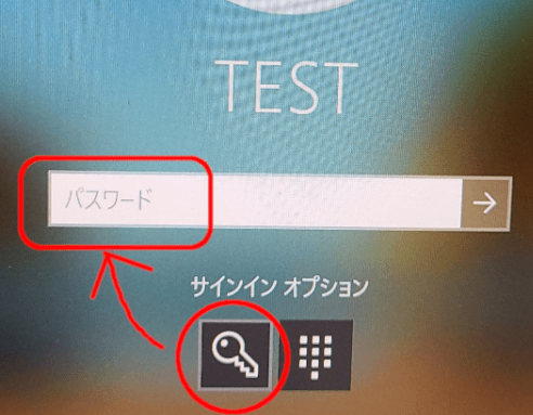 - Windowsのサインイン画面で、鍵のアイコンをクリックします。