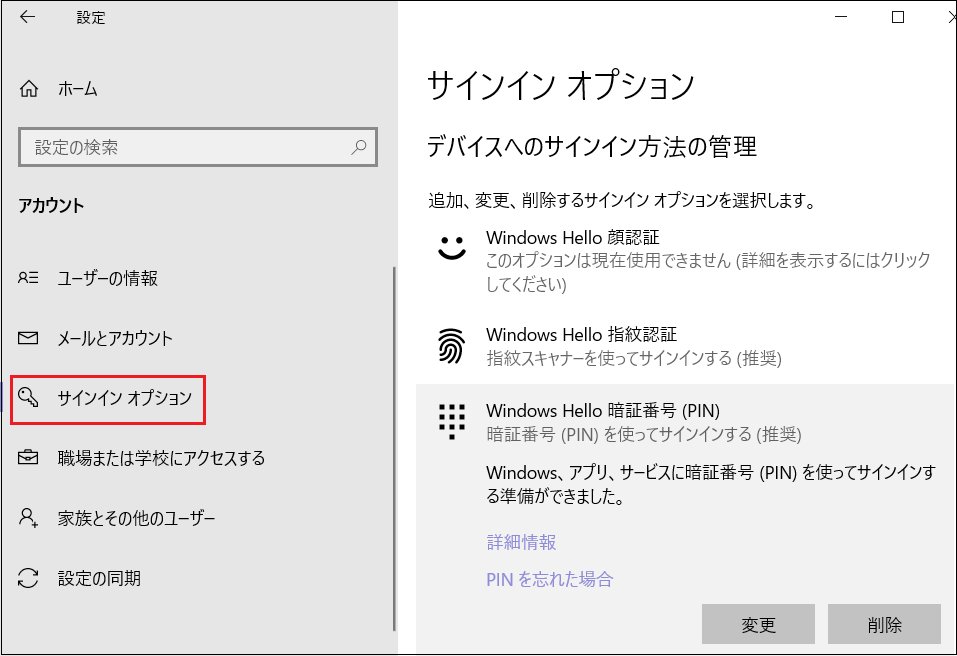 - [Windows Hello暗証番号(PIN)]をクリックして展開します。