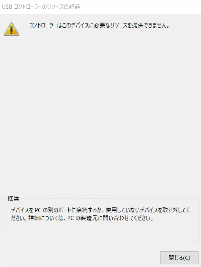 「USBコントローラのリソースの超過」エラーが発生する原因