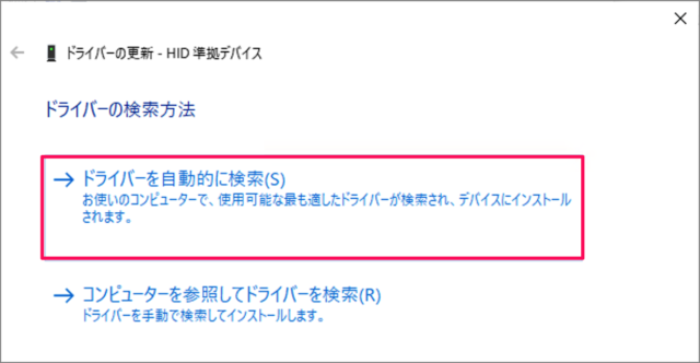 それでも問題が解決しない場合は、1~5のステップをもう一度行い、今度は「ドライバーを自動的に検索する」を選択します。