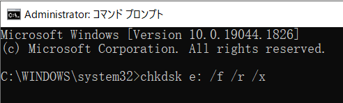 CHKDSKが見つけた問題を修復するには、chkdsk /f c: (C:ドライブの場合)と入力します。