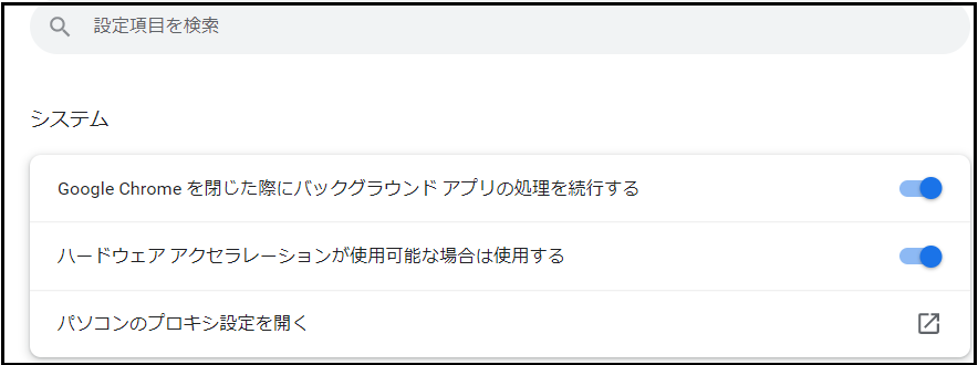 フォーラムでは、ハードウェアアクセラレーション機能を無効にすることで、Google Chromeのブラックスクリーンの問題を解決したユーザーが何人も報告されています。あなたもこの方法を試してみてください。