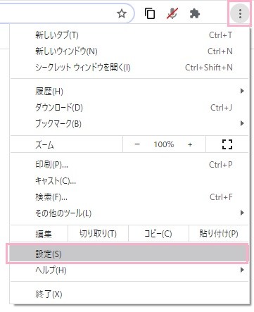 ②右上にあるメニューアイコンをクリックし、「設定」を選択します。
