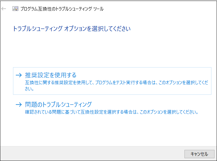 互換モードの設定が正しくない場合、アプリケーションまたはプログラムがコンピュータに正しく読み込まれないことがあります。そのような疑いがある場合は、以下の手順でプログラム互換性トラブルシューターを実行してください。