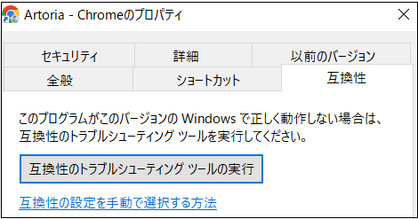 ②[互換性] タブに切り替えます。