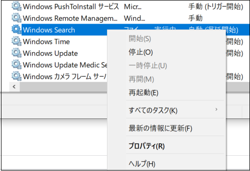 - [Windows Search]を右クリックし、[再起動]をクリックします。